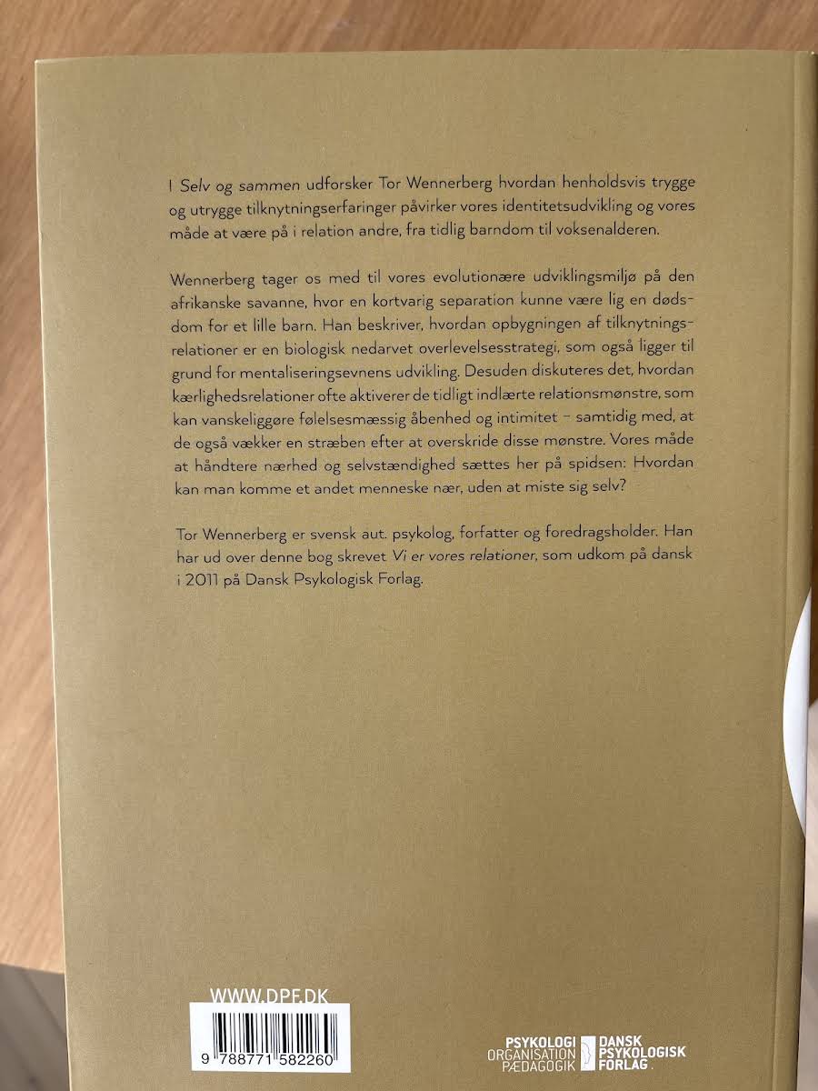 I Selv og sammen giver Tor Wennerberg en indsigtsfuld rejse gennem, hvordan trygge og utrygge tilknytningserfaringer former vores identitet og vores måde at være sammen med andre på - fra spædbarnets første tillidsbånd og helt ind i voksenalderens komplekse relationer. Vi føres tilbage til menneskets evolutionære barndom på den afrikanske savanne, hvor selv kortvarig adskillelse kunne betyde livsfare. Her udfolder Wennerberg, hvordan tilknytning er en biologisk nedarvet overlevelsesstrategi, der samtidig baner vejen for evnen til at mentalisere og forstå andres sindstilstande. Bogen belyser også, hvordan kærlighed og nære relationer ofte vækker de tidligt indlærte mønstre til live: Vi søger intimitet og nærhed, men risikerer samtidig at lukke af for følelsesmæssig åbenhed. Samtidig opstår ønsket om at bryde gamle vaner og skabe mere bæredygtige mønstre i parforholdet. Med spørgsmålet om, hvordan vi kan komme hinanden nær uden at miste os selv, ruster Selv og sammen læseren til at reflektere over egen balance mellem selvstændighed og samhørighed. Tor Wennerberg er svensk autoriseret psykolog, forfatter og foredragsholder. Han har tidligere udgivet Vi er vores relationer (dansk udgave 2011).