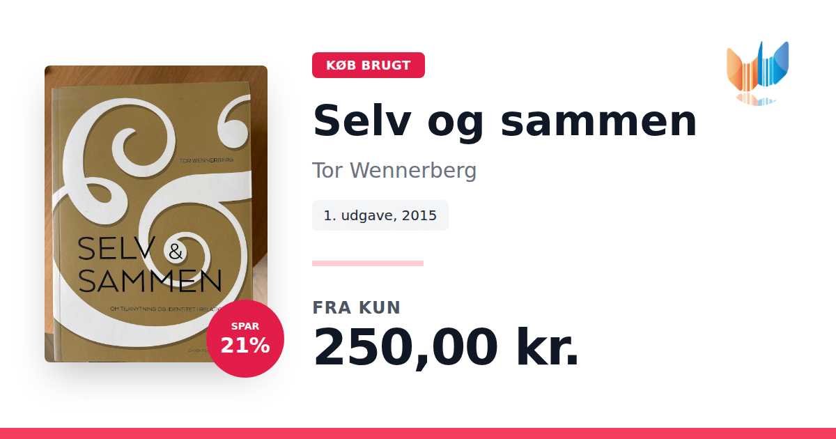Lige nu kan du købe "Selv og sammen" af Tor Wennerberg til kun 250,00 kr. Du sparer hele 21% af nyprisen! Bogen du ser her er brugt, og i perfekt stand. Vi har i øjeblikket kun et enkelt eksemplar til salg af "Selv og sammen", så slå til mens du kan!