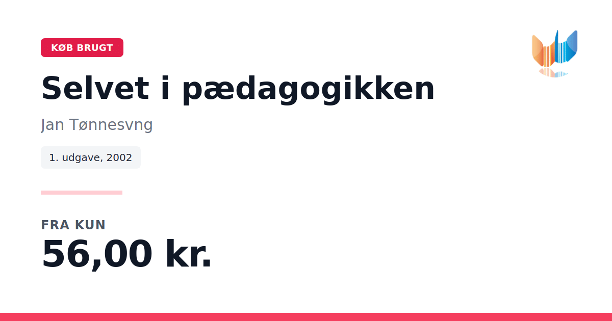 Lige nu kan du købe "Selvet i pædagogikken" af Jan Tønnesvng til kun 56,00 kr. Du sparer hele 75% af nyprisen! Bogen du ser her er brugt, og i slidt stand. Vi har i øjeblikket kun et enkelt eksemplar til salg af "Selvet i pædagogikken", så slå til mens du kan!