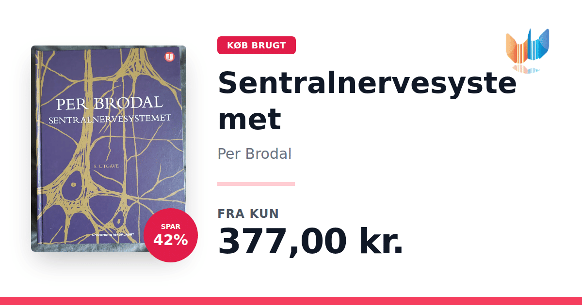 Lige nu kan du købe "Sentralnervesystemet" af Per Brodal til kun 377,00 kr. Du sparer hele 42% af nyprisen! Bogen du ser her er brugt, og i perfekt stand. Vi har i øjeblikket 2 eksemplarer til salg af "Sentralnervesystemet", så husk at se de forskellige udgaver.
