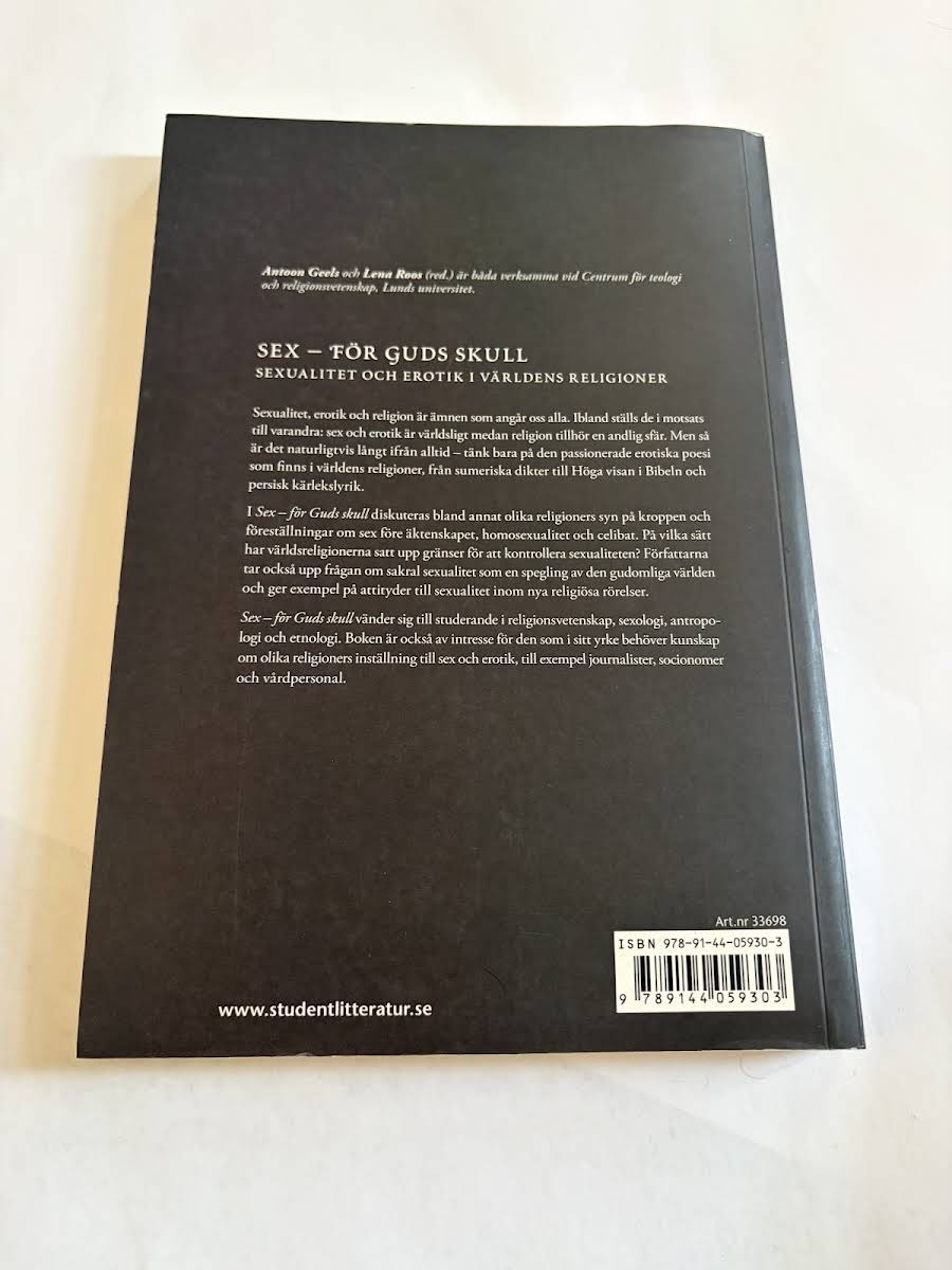 Seksualitet, erotik og religion er universelle emner, som berører os alle. Ofte bliver de opstillet som hinandens modsætninger ud fra den tankegang, at religion tilhører det åndelige, mens sex og erotik er bundet til det verdslige. I *Sex - För Guds Skull: Sexualitet och erotik i världens religioner* udforsker Antoon Geels og Lena Roos dette spændingsfelt og viser, at forholdet mellem det åndelige og det kødelige langt fra altid er så sort-hvidt. Et tydeligt eksempel på dette er den passionerede og erotiske poesi, der findes på tværs af verdens religioner - lige fra gamle sumeriske digte og Højsangen i Bibelen til den persiske kærlighedslyrik.