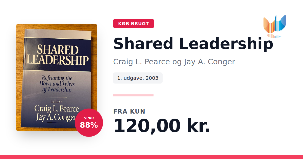 Lige nu kan du købe "Shared Leadership" af Craig L. Pearce og Jay A. Conger til kun 120,00 kr. Du sparer hele 88% af nyprisen! Bogen du ser her er brugt, og i perfekt stand. Vi har i øjeblikket kun et enkelt eksemplar til salg af "Shared Leadership", så slå til mens du kan!