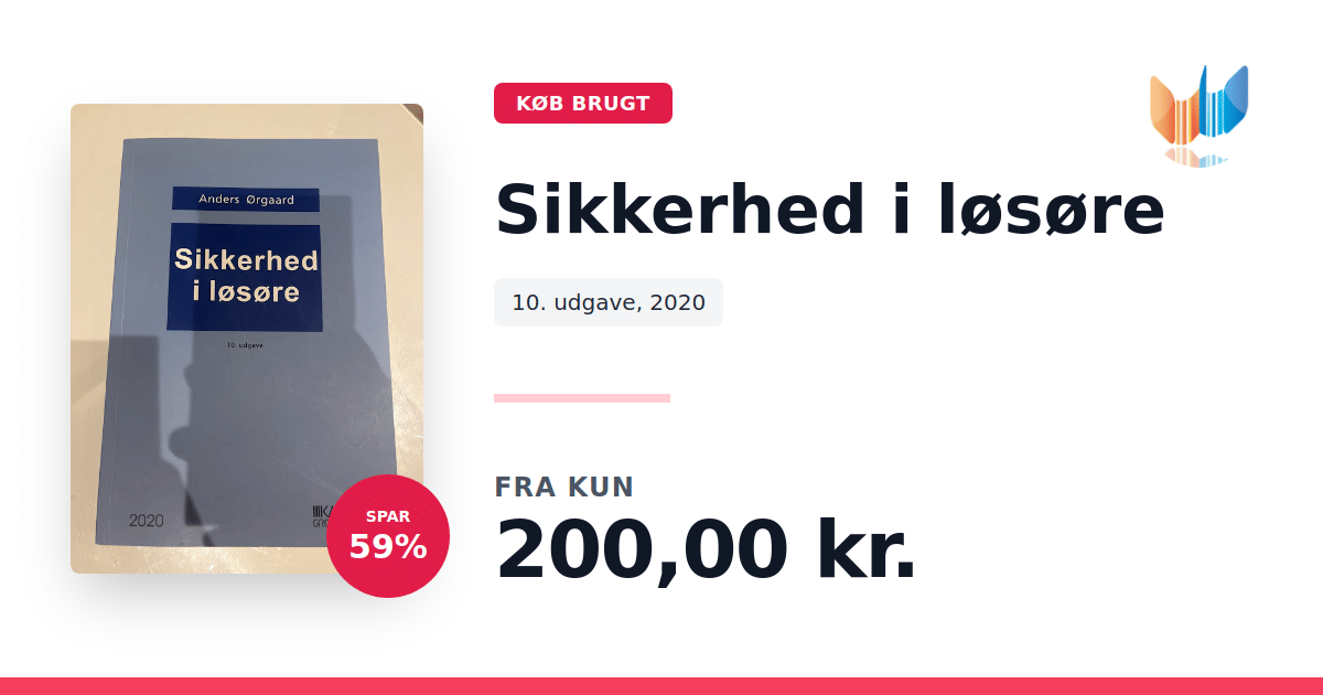 Lige nu kan du købe "Sikkerhed i løsøre" til kun 200,00 kr. Du sparer hele 59% af nyprisen! Bogen du ser her er brugt, og i perfekt stand. Vi har i øjeblikket 5 eksemplarer til salg af "Sikkerhed i løsøre", så husk at se de forskellige udgaver.