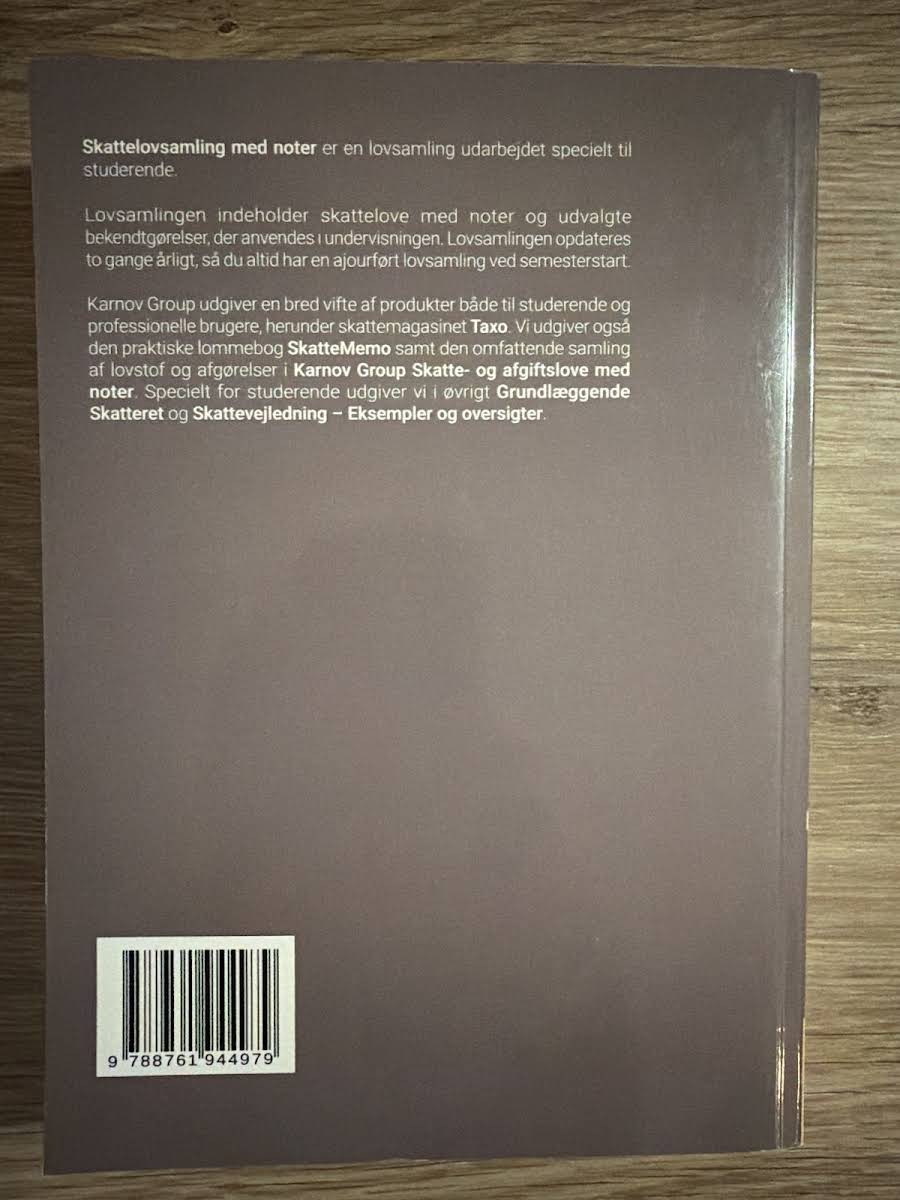 Lige nu kan du købe "Skattelovsamling med noter 2024/1" til kun 254,00 kr. Du sparer hele 25% af nyprisen! Bogen du ser her er brugt, og i perfekt stand. Vi har i øjeblikket kun et enkelt eksemplar til salg af "Skattelovsamling med noter 2024/1", så slå til mens du kan!