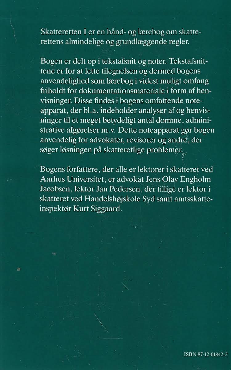 • Skatteretten, Jens Olav Engholm Jacobsen, Jan Pedersen, Kurt Siggaard, 9788712018438