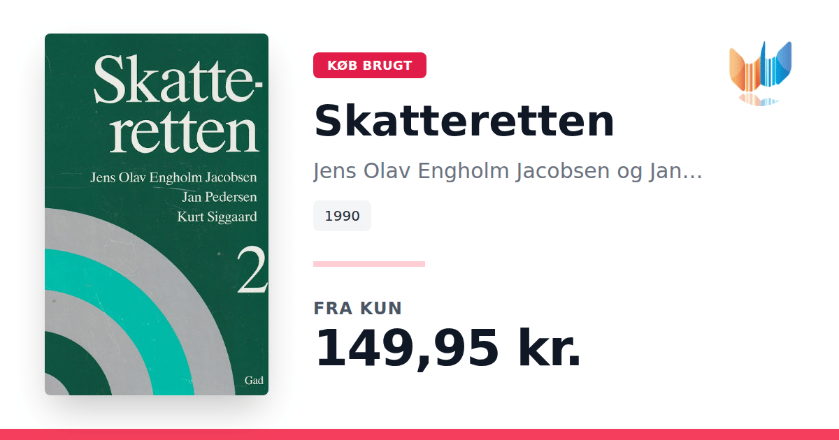 Lige nu kan du købe "Skatteretten" af Jens Olav Engholm Jacobsen og Jan Pedersen til kun 149,95 kr. Bogen du ser her er brugt, og i perfekt stand. Vi har i øjeblikket 2 eksemplarer til salg af "Skatteretten", så husk at se de forskellige udgaver.