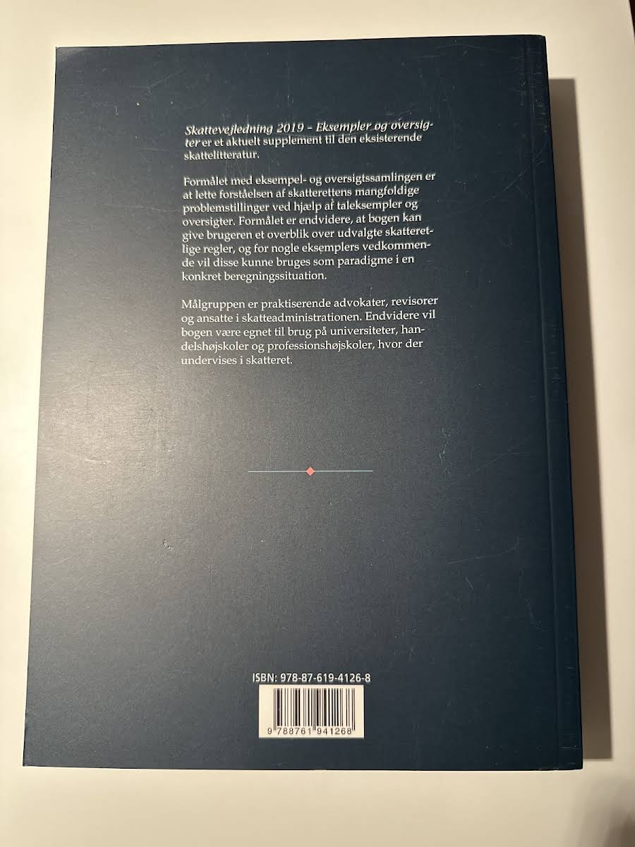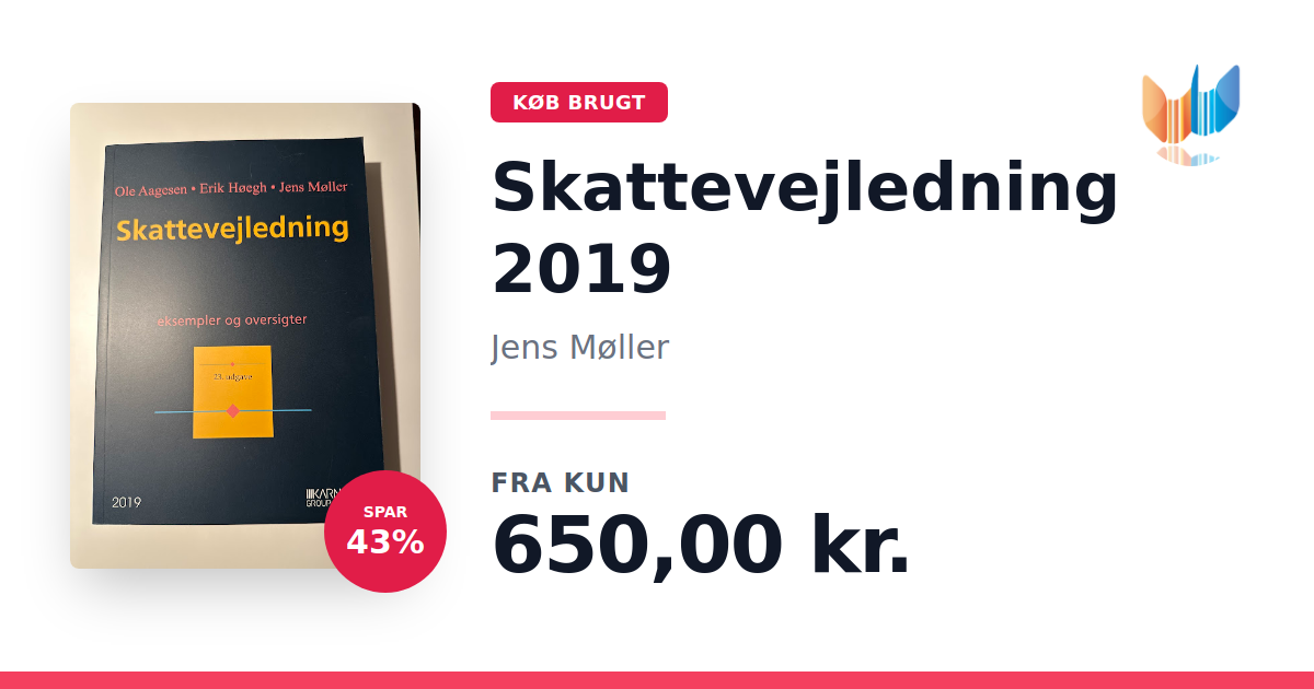 Lige nu kan du købe "Skattevejledning 2019" af Jens Møller til kun 650,00 kr. Du sparer hele 43% af nyprisen! Bogen du ser her er brugt, og i perfekt stand. Vi har i øjeblikket kun et enkelt eksemplar til salg af "Skattevejledning 2019", så slå til mens du kan!