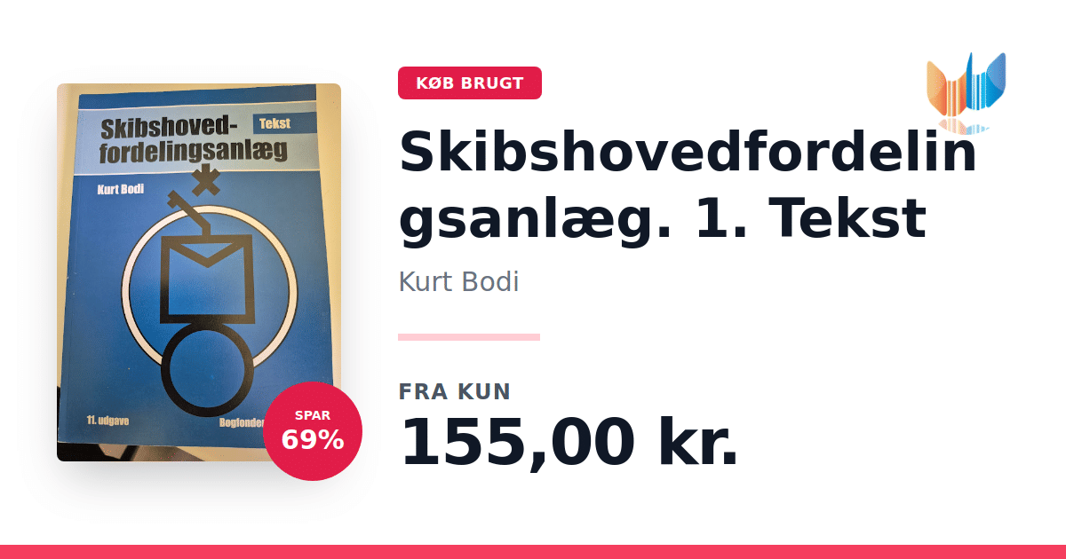 Lige nu kan du købe "Skibshovedfordelingsanlæg. 1. Tekst" af Kurt Bodi til kun 155,00 kr. Du sparer hele 69% af nyprisen! Bogen du ser her er brugt, og i perfekt stand. Vi har i øjeblikket 2 eksemplarer til salg af "Skibshovedfordelingsanlæg. 1. Tekst", så husk at se de forskellige udgaver.
