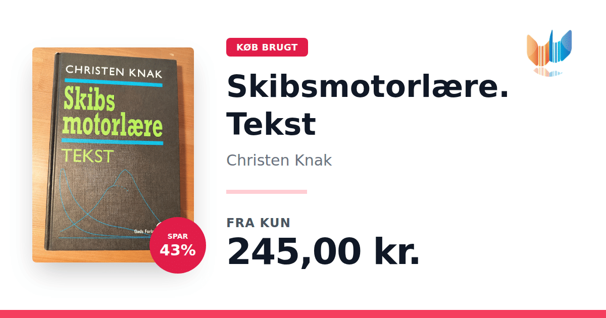 Lige nu kan du købe "Skibsmotorlære. Tekst" af Christen Knak til kun 245,00 kr. Du sparer hele 43% af nyprisen! Bogen du ser her er brugt, og i perfekt stand. Vi har i øjeblikket kun et enkelt eksemplar til salg af "Skibsmotorlære. Tekst", så slå til mens du kan!