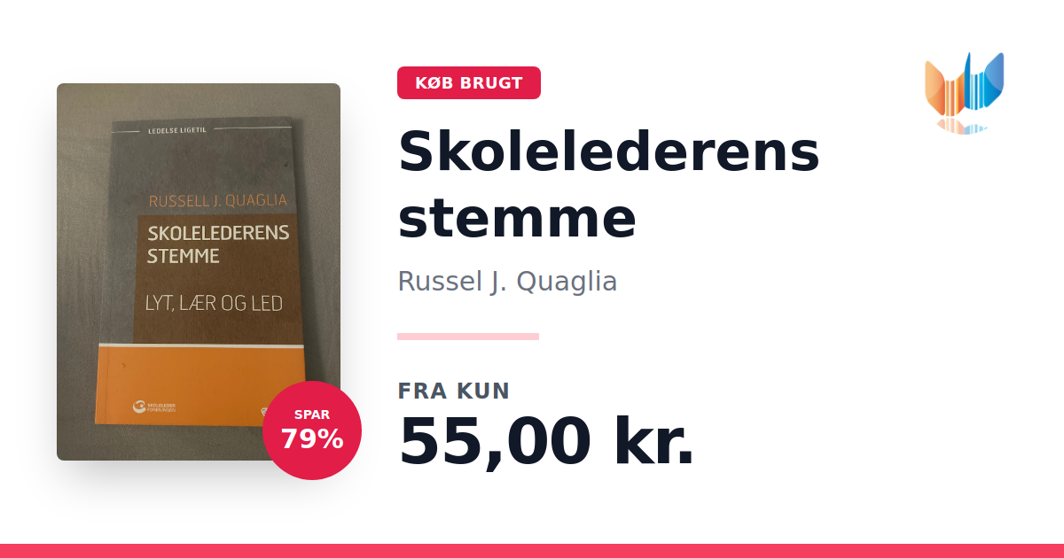 Lige nu kan du købe "Skolelederens stemme" af Russel J. Quaglia til kun 55,00 kr. Du sparer hele 79% af nyprisen! Bogen du ser her er brugt, og i god stand. Vi har i øjeblikket kun et enkelt eksemplar til salg af "Skolelederens stemme", så slå til mens du kan!
