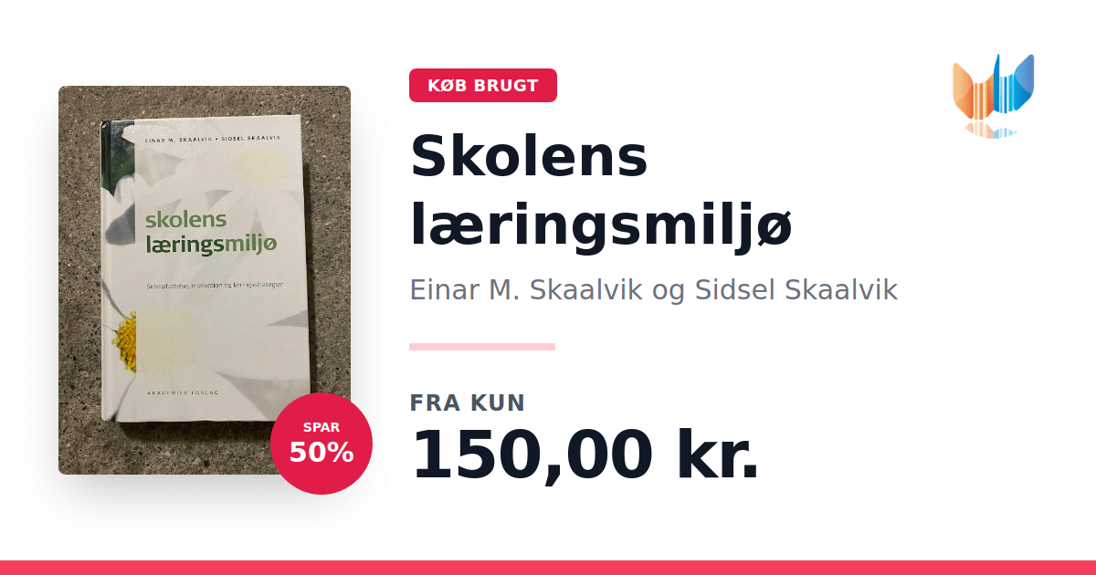 Lige nu kan du købe "Skolens læringsmiljø" af Einar M. Skaalvik og Sidsel Skaalvik til kun 150,00 kr. Du sparer hele 50% af nyprisen! Bogen du ser her er brugt, og i slidt stand. Vi har i øjeblikket 2 eksemplarer til salg af "Skolens læringsmiljø", så husk at se de forskellige udgaver.