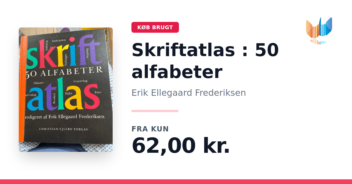 Lige nu kan du købe "Skriftatlas : 50 alfabeter" af Erik Ellegaard Frederiksen til kun 62,00 kr. Bogen du ser her er brugt, og i god stand. Vi har i øjeblikket kun et enkelt eksemplar til salg af "Skriftatlas : 50 alfabeter", så slå til mens du kan!