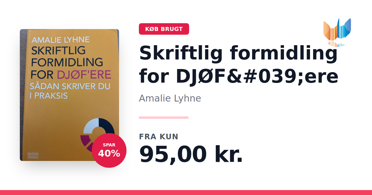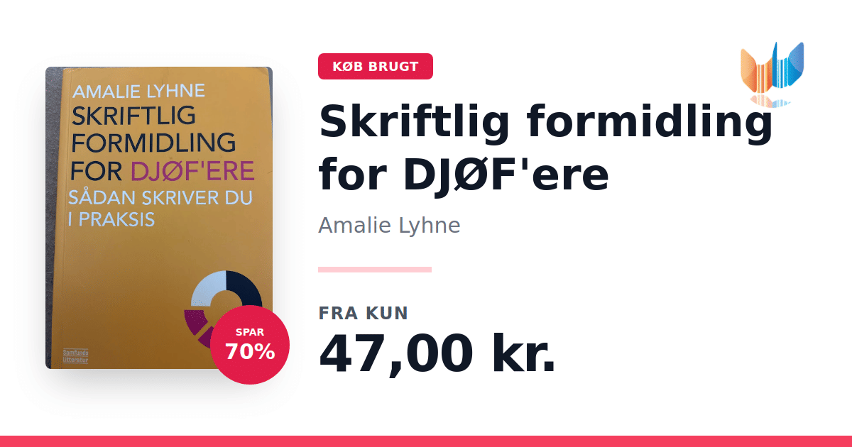 Når man er DJØF'er, kræver hverdagen en bred vifte af skriftlige opgaver – fra notater og rapporter til webtekster og mere. I "Skriftlig formidling for DJØF'ere" præsenterer Amalie Lyhne en trin-for-trin guide, der gør det nemt at tilegne sig de nødvendige færdigheder, uanset om man er nybegynder eller ønsker at finpudse sit håndværk. Bogen fokuserer på de væsentlige genrer med praktiske øvelser og konkrete eksempler, der afspejler den virkelige verden, DJØF'ere arbejder i. Med en let tilgængelig tilgang hjælper bogen dig med at opbygge din skrivekompetence og styrke din professionelle formidlingsevne. Udgivet af Samfundslitteratur i 2013 og præsenteret i et overskueligt paperbackformat med 140 sider, er dette et ideelt værktøj for alle, der ønsker at gøre deres skriftlige udtryk skarpere og mere effektivt.