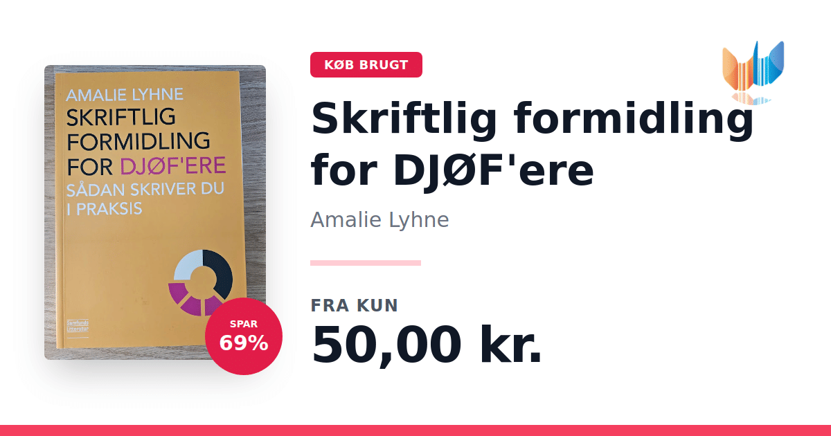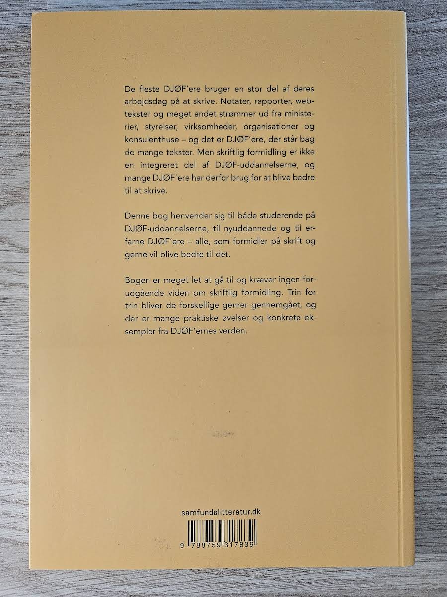 Når man er DJØF'er, kræver hverdagen en bred vifte af skriftlige opgaver – fra notater og rapporter til webtekster og mere. I "Skriftlig formidling for DJØF'ere" præsenterer Amalie Lyhne en trin-for-trin guide, der gør det nemt at tilegne sig de nødvendige færdigheder, uanset om man er nybegynder eller ønsker at finpudse sit håndværk. Bogen fokuserer på de væsentlige genrer med praktiske øvelser og konkrete eksempler, der afspejler den virkelige verden, DJØF'ere arbejder i. Med en let tilgængelig tilgang hjælper bogen dig med at opbygge din skrivekompetence og styrke din professionelle formidlingsevne. Udgivet af Samfundslitteratur i 2013 og præsenteret i et overskueligt paperbackformat med 140 sider, er dette et ideelt værktøj for alle, der ønsker at gøre deres skriftlige udtryk skarpere og mere effektivt.