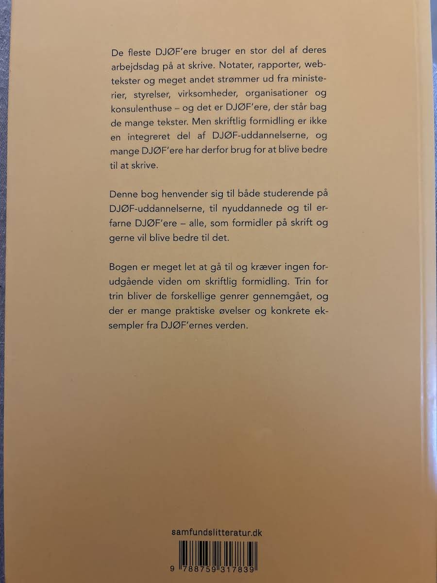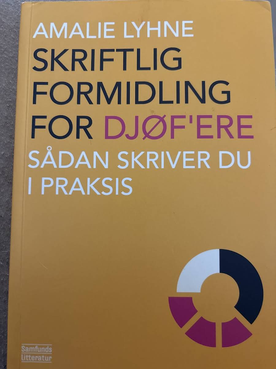 Når man er DJØF'er, kræver hverdagen en bred vifte af skriftlige opgaver – fra notater og rapporter til webtekster og mere. I "Skriftlig formidling for DJØF'ere" præsenterer Amalie Lyhne en trin-for-trin guide, der gør det nemt at tilegne sig de nødvendige færdigheder, uanset om man er nybegynder eller ønsker at finpudse sit håndværk. Bogen fokuserer på de væsentlige genrer med praktiske øvelser og konkrete eksempler, der afspejler den virkelige verden, DJØF'ere arbejder i. Med en let tilgængelig tilgang hjælper bogen dig med at opbygge din skrivekompetence og styrke din professionelle formidlingsevne. Udgivet af Samfundslitteratur i 2013 og præsenteret i et overskueligt paperbackformat med 140 sider, er dette et ideelt værktøj for alle, der ønsker at gøre deres skriftlige udtryk skarpere og mere effektivt.