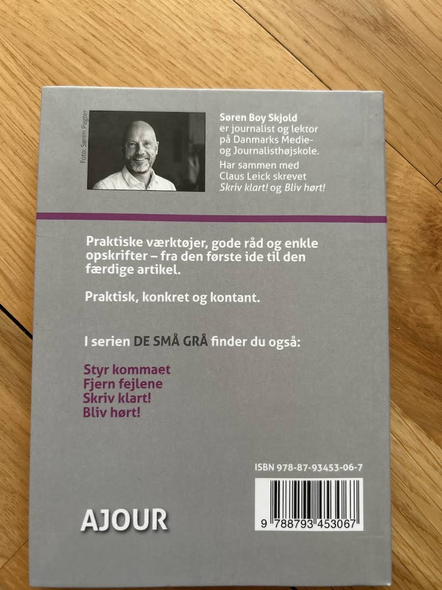 Skriv artikler er den nyeste udgivelse i serien De Små Grå, hvor Søren Boy præsenterer en overskuelig og inspirerende guide til at skrive artikler. I 25 korte kapitler fører bogen dig sikkert igennem alle de essentielle trin – fra den allerførste idé til den færdige artikel – med praktiske værktøjer, klare råd og enkle metoder. Med sine 96 sider er denne paperback et uundværligt redskab for alle, der ønsker at styrke deres skrivefærdigheder. Serien De Små Grå omfatter allerede værker som Styr kommaet, Fjern fejlene, Skriv klart! og Bliv hørt – og med Skriv artikler følger du en tradition for let tilgængelig og målrettet vejledning i skrivekunsten.