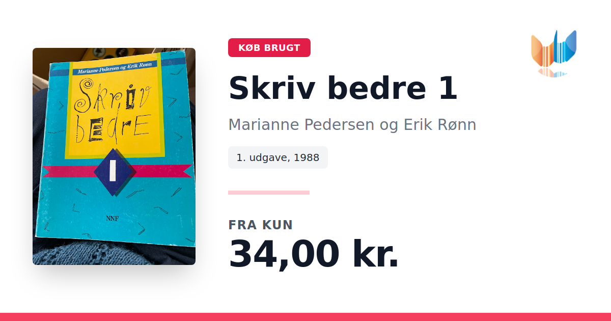 Lige nu kan du købe "Skriv bedre 1" af Marianne Pedersen og Erik Rønn til kun 34,00 kr. Bogen du ser her er brugt, og i god stand. Vi har i øjeblikket kun et enkelt eksemplar til salg af "Skriv bedre 1", så slå til mens du kan!