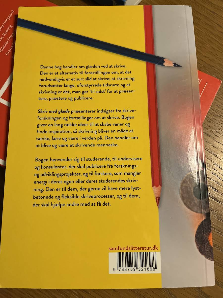Charlotte Wegener præsenterer i Skriv med glæde en inspirerende tilgang til akademisk skrivning, hvor fokus ligger på at opdage og genfinde glæden ved at sætte ord på tanker og idéer. Bogen dykker ned i skriveforskningen og byder på fortællinger, der sammen væver en fortælling om, hvordan skrivningen kan blive både meningsfuld og udviklende. Med et væld af konkrete idéer og redskaber opfordrer Skriv med glæde læseren til at skabe nye vaner og finde inspiration i den daglige skriveproces. Uanset om du er studerende, underviser, konsulent eller forsker, giver denne bog et frisk perspektiv på, hvordan man kan få mere energi og overskud i arbejdet med at udtrykke sig. Bogen minder os om, at skrivning er en levende proces, der handler om at udforske, lære og vokse. Skriv med glæde er således en indbydende og opløftende guide til alle, der ønsker at gøre skrivningen til en glædesfuld og integreret del af livet.