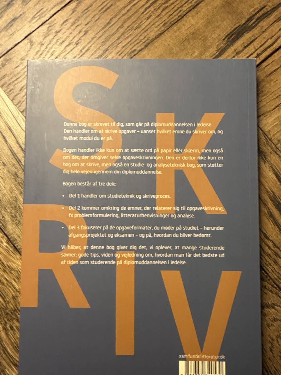 Skriv opgaver på diplomuddannelsen i ledelse er din guide til både akademisk skrivning og effektiv studieteknik. Denne håndbog henvender sig direkte til studerende på diplomuddannelsen i ledelse og dækker alle aspekter af opgaveskrivningsprocessen – uanset om du arbejder med teoridannelse, litteraturhenvisninger eller dybdegående analyser. Bogen er inddelt i tre klare sektioner, der hver især supplerer hinanden. Den første del præsenterer grundlæggende studieteknik og skriveredskaber, mens del to fokuserer på centrale skriveelementer som problemformulering, kilder og analytiske metoder. I den tredje del sættes der ind på de specifikke opgaveformater, du kan forvente at møde – fra afgangsprojekter til eksamener – og hvordan bedømmelsesprocessen foregår. Med denne bog håber forfatterne at tilbyde de essentielle værktøjer og inspirerende tips, som mange studerende efterspørger, for at gøre din rejse gennem diplomuddannelsen i ledelse både mere overskuelig og succesfuld.