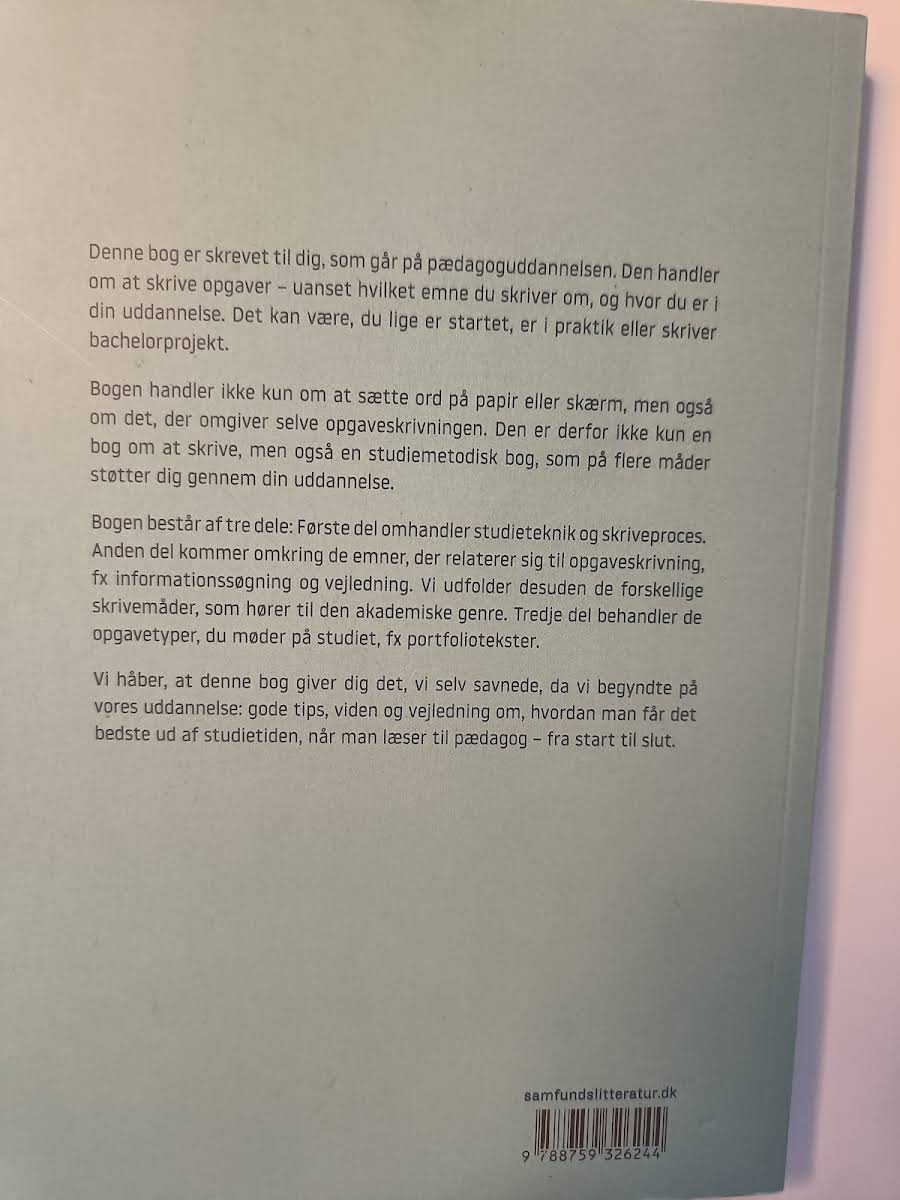 Denne bog er skrevet til dig, der er en del af pædagoguddannelsen – uanset om du er ny på studiet, i praktik, eller er ved at skrive bachelorprojektet. Jakob Matthiesen og Marianne Eskebæk Larsen giver dig et praktisk og metodisk redskab, der dykker ned i hele skriveprocessen. Her finder du både teoretiske redskaber og konkrete tips til at styrke din akademiske skrivekompetence, så du får det bedste ud af din studietid. Bogen er inddelt i tre dele, der tilsammen skaber en helhedsforståelse af opgaveskrivning. Den første del fokuserer på studieteknikker og selve skriveprocessen, som udgør fundamentet for dine opgaver. I den anden del behandles vigtige emner som informationssøgning, akademisk vejledning og de forskellige skrivestile, der er relevante for pædagogiske opgaver. Den sidste del giver en grundig gennemgang af de opgavetyper, du møder på din uddannelse, og tilbyder praktiske eksempler, der kan inspirere dig til at mestre faget fra start til slut.