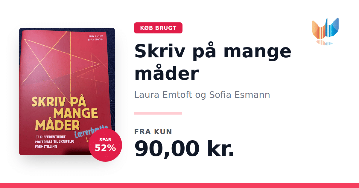Skriv på mange måder er et differentieret materiale til skriftlig fremstilling i 1.-2. klasse. Dette lærerhæfte på 48 sider giver læreren et enkelt og overskueligt redskab til at arbejde med elevernes skrivekompetencer. Materialet præsenterer fem genrer, som eleverne typisk møder i deres hverdag: postkort, kort, sms, opskrift og portræt. Hver genre introduceres med eksempler og oplæg, der støtter elevernes egne skriveforsøg. Som følge af skolereformen er inklusion et centralt krav i folkeskolen, og dette hæfte tager højde for, at elever med forskellige forudsætninger nu er samlet i almenklassen. Målet er at fremme både faglig progression og fællesskab. Opgaverne er differentieret på fire niveauer, så alle kan arbejde mod samme overordnede læringsmål. De fagligt stærke elever udfordres med højere krav, mens de elever, der har brug for mere støtte, får netop den hjælp, de behøver.