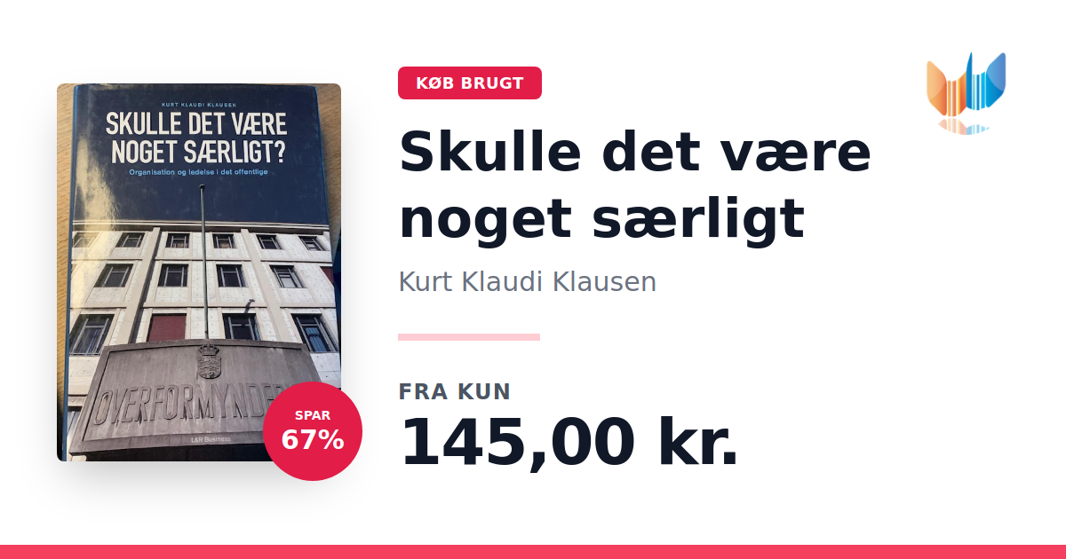 I "Skulle det være noget særligt?" præsenterer Kurt Klaudi Klausen en dybdegående analyse af organisation og ledelse i den offentlige sektor. Bogen kaster lys over, hvordan ledelsesopgaver i det offentlige adskiller sig fra dem i privat erhvervsliv, og den problematiserer overførslen af modeller, teorier og metoder uden videre. Med et nuanceret og realistisk blik udfolder Klausen de centrale problemområder og brændpunkter, som kendetegner ledelsesdebatten i offentlige institutioner. Værket giver læseren et solidt overblik over de særlige udfordringer, der følger med at lede i en offentlig organisation, og gør det klart, at en målrettet tilgang er essentiel for at håndtere den komplekse virkelighed i det offentlige landskab.