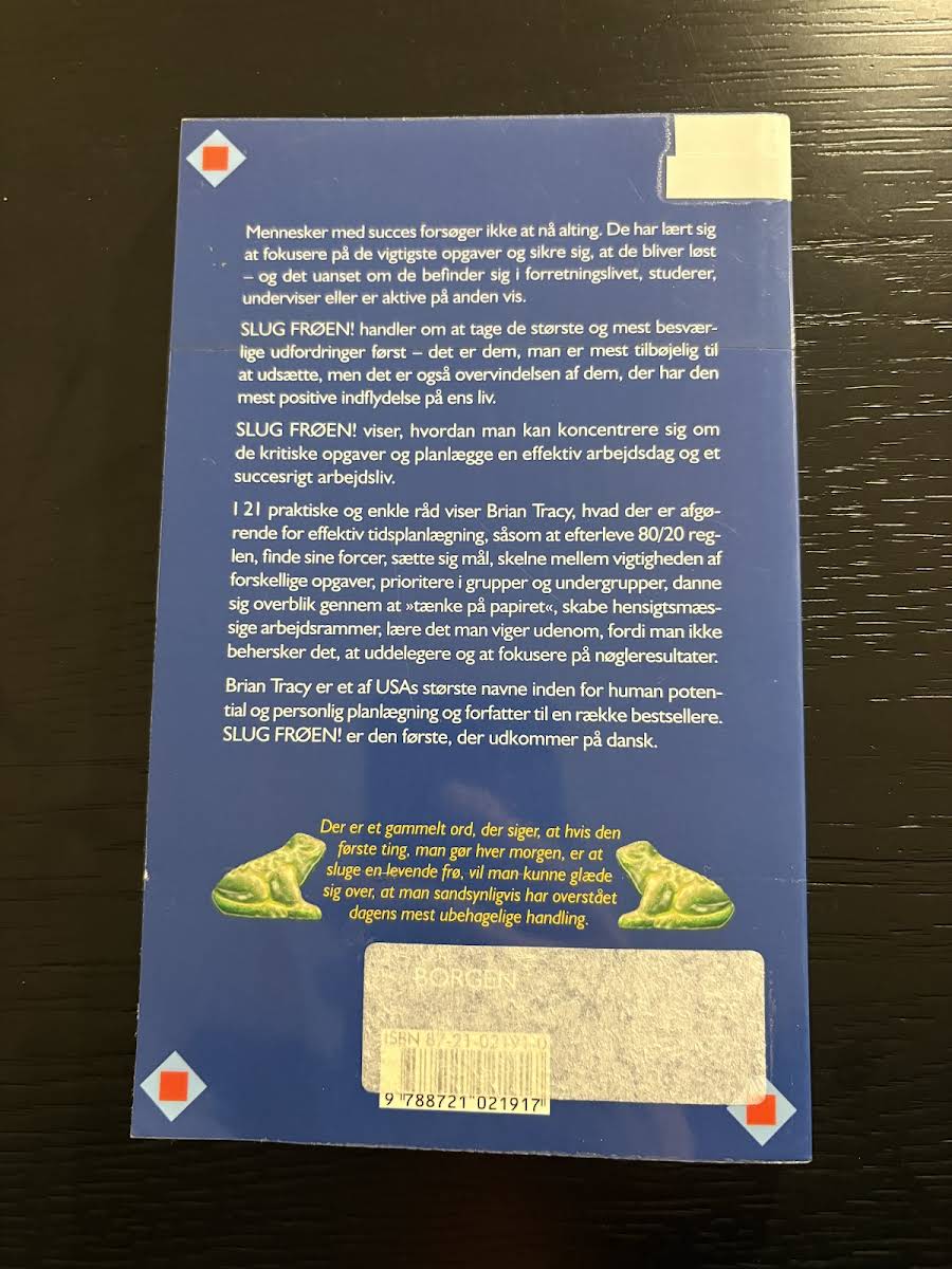 Lige nu kan du købe "Slug frøen!" af Brian Tracy til kun 100,00 kr. Du sparer hele 50% af nyprisen! Bogen du ser her er brugt, og i perfekt stand. Vi har i øjeblikket kun et enkelt eksemplar til salg af "Slug frøen!", så slå til mens du kan!
