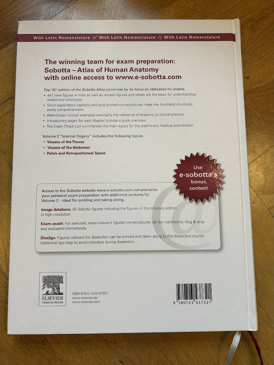 Internal Organs er bind 2 i Johannes Sobottas engelsksprogede Sobotta Atlas of Human Anatomy, specielt tilpasset behovene hos prækliniske medicinstuderende. Med konsekvent anvendelse af latin som fagterminologi giver atlaset et struktureret overblik over kroppens indre organer og fokuserer fra begyndelsen på de emner, der er mest relevante for den medicinske eksamen. Den gennemprøvede studiekoncept fremmer læsning, forståelse og træning: Kortfattede billedforklaringer fremhæver de væsentligste strukturer, mens kliniske eksempler sætter anatomien ind i en større kontekst. Illustrationerne er optimeret med reduceret tekst og klar grafik, så man nemt kan afkode selv komplekse detaljer. Som supplement følger et særskilt hæfte med 100 tabeller over muskler og nerver, der understøtter systematisk repetition. Kapitelinddelingerne omhandler viscera i thorax, abdomen samt bækken og det retroperitoneale rum - hver med introducerende oversigtssider, der hurtigt guider læseren igennem hovedpunkterne. Adgangen til e-sobotta.com rummer yderligere ressourcer til eksamenstræning: Højtopløselige figurer fra både denne og tidligere udgaver, interaktive nomenklaturøvelser via "Exam Coach" og praktiske print-venlige illustrationer til dissektionskurset ("Diss2go"). Over 700 nye samt reviderede figurer og tabeller danner et solidt fundament for alle, der vil mestre menneskets indre anatomi.