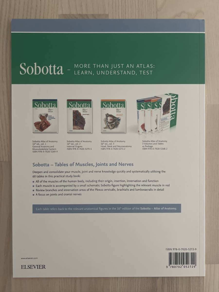 • Sobotta Tables of Muscles, Joints and Nerves, English/Latin, Jens Waschke, Friedrich Paulsen, 9780702052729