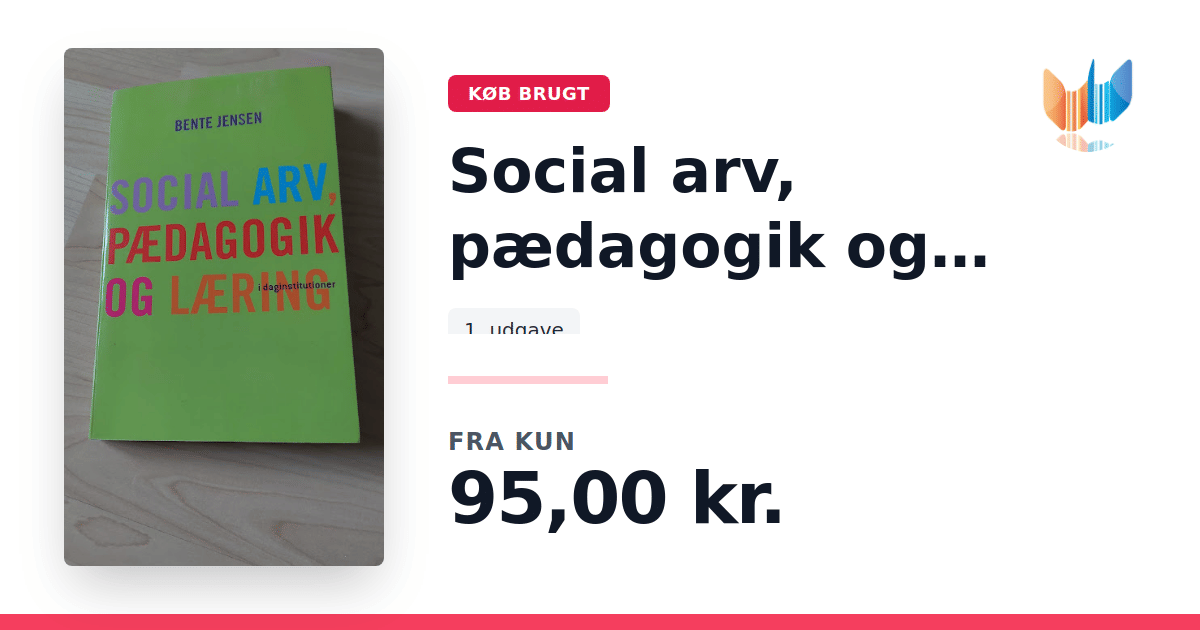 Lige nu kan du købe "Social arv, pædagogik og læring" til kun 95,00 kr. Bogen du ser her er brugt, og i perfekt stand. Vi har i øjeblikket kun et enkelt eksemplar til salg af "Social arv, pædagogik og læring", så slå til mens du kan!