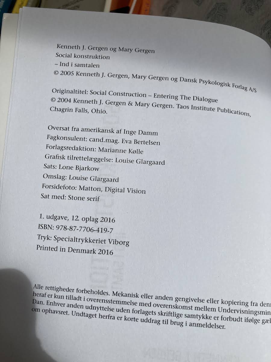 I "Social konstruktion" fremlægger de to anerkendte forskere Mary Gergen og Kenneth J. Gergen centrale idéer inden for socialkonstruktionismen – en ny tilgang til socialpsykologien, hvor selvet og den sociale verden forstås som produkter af vores sprog og relationer. Med en lettilgængelig tilgang forklarer forfatterne, hvordan vores måde at opfatte os selv og hinanden på hele tiden bliver skabt og genskabt i dagligdagen. Bogen giver desuden indblik i, hvordan de socialkonstruktionistiske teorier kan omsættes til praktiske anvendelser i f.eks. uddannelse, konfliktløsning og organisatorisk udvikling.