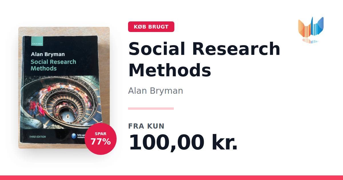 Social Research Methods, 3. udgave af Alan Bryman, præsenterer på levende vis de centrale tilgange og teknikker inden for social forskning i en overskuelig fuldfarve-udgave. Gennem sine eksempler demonstrerer Bryman, hvordan kvalitative, kvantitative og mixed-methods-studier anvendes og implementeres i praksis. Med et klart og studentervenligt sprog undgår han komplicerede matematiske formler, så alle kan deltage i analysen af data. Bogen fører læseren trin for trin gennem udvikling af egne forskningsprojekter: fra valg af metode og analyseredskaber til tolkning af resultater og den endelige rapport. Den teoretiske forståelse sættes i spil med praktiske eksempler, der gør det lettere at omsætte begreber til handling. Denne tredje, grundigt reviderede udgave byder på nyt bokset materiale, blandt andet "Research in Focus", der sætter spot på autentiske studier, "Key Concepts" til begrebsafklaring, "Tips and Skills" med konkrete råd samt "Thinking Deeper" til diskussion og refleksion. Der er desuden tilføjet nye kapitler om litteraturgennemgang og planlægning af forskningsspørgsmål, opdateret vejledning i brug af internettet som datakilde samt trin-for-trin instruktioner i SPSS og NVivo. Et omfattende online-komplement understøtter både undervisere og studerende med testbank, PowerPoint-slides, cases, multiple-choice med øjeblikkelig feedback, nyttige links, interaktive Excel-øvelser, en projektguide og beretninger fra rigtige studerende. Social Research Methods er ideel til både bachelor- og kandidatkurser i socialforskning.