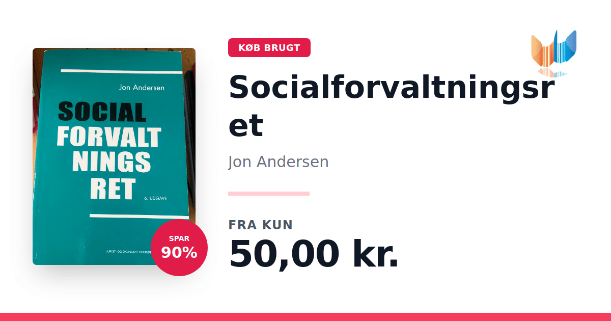 Lige nu kan du købe "Socialforvaltningsret" af Jon Andersen til kun 50,00 kr. Du sparer hele 90% af nyprisen! Bogen du ser her er brugt, og i perfekt stand. Vi har i øjeblikket 10 eksemplarer til salg af "Socialforvaltningsret", så husk at se de forskellige udgaver.