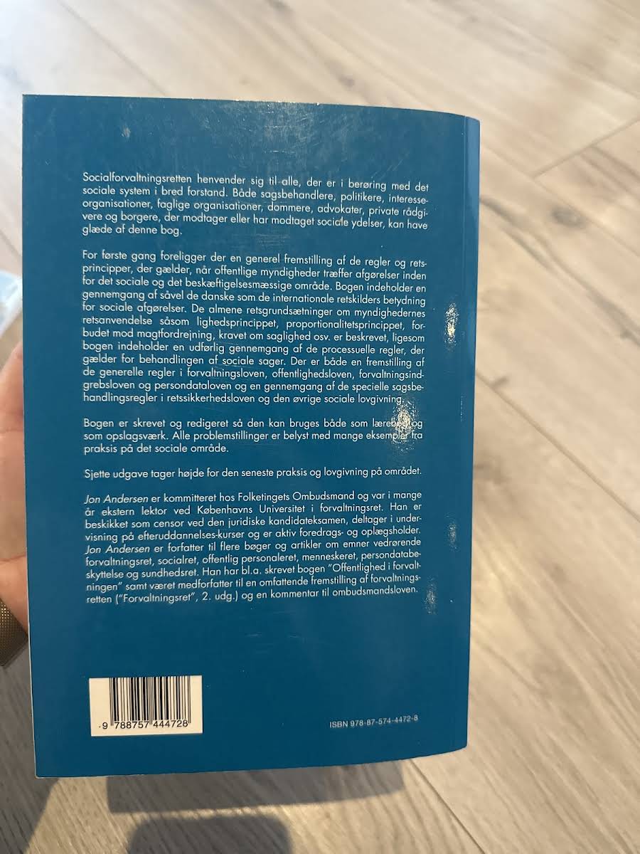"Socialforvaltningsret" (7. udgave) af Jon Andersen byder på en grundig og præcis gennemgang af de centrale regler og retsprincipper, der styrer de offentlige myndigheders afgørelser på det sociale område. Bogen præsenterer ikke blot de danske og internationale retskilder, men sætter også fokus på de almene retlige grundsatser såsom lighedsprincippet, proportionalitetsprincippet, forbuddet mod magtfordrejning og kravet om saglighed. Bogen fungerer både som en lærebog og et opslagsværk for alle, der arbejder med eller har interesse for socialforvaltningen – lige fra sagsbehandlere, politikere og advokater til borgere med erfaring inden for området. Med en detaljeret redegørelse for de processuelle regler i sociale sager og en omfattende gennemgang af lovgivningen på området, herunder forvaltningsloven, offentlighedsloven, forvaltningsindgrebsloven, persondataloven og retssikkerhedsloven, giver "Socialforvaltningsret" et solidt fundament for forståelsen af socialforvaltningens praksis og principper.