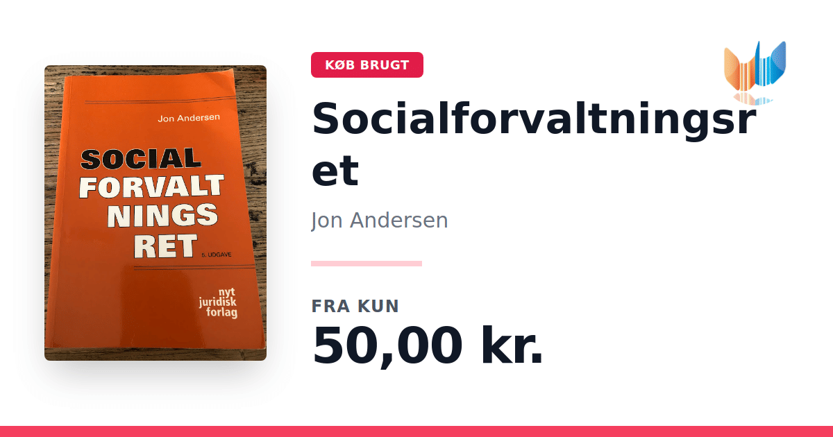 Lige nu kan du købe "Socialforvaltningsret" af Jon Andersen til kun 50,00 kr. Bogen du ser her er brugt, og i god stand. Vi har i øjeblikket 12 eksemplarer til salg af "Socialforvaltningsret", så husk at se de forskellige udgaver.