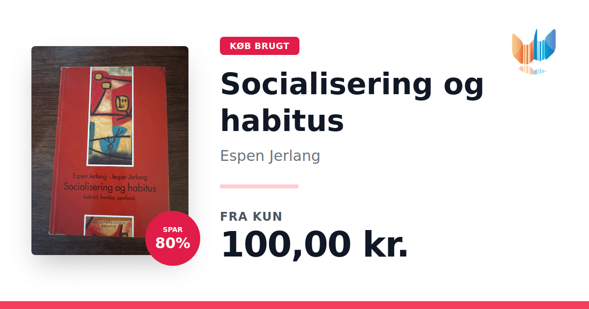 Lige nu kan du købe "Socialisering og habitus" af Espen Jerlang til kun 100,00 kr. Du sparer hele 80% af nyprisen! Bogen du ser her er brugt, og i god stand. Vi har i øjeblikket 2 eksemplarer til salg af "Socialisering og habitus", så husk at se de forskellige udgaver.