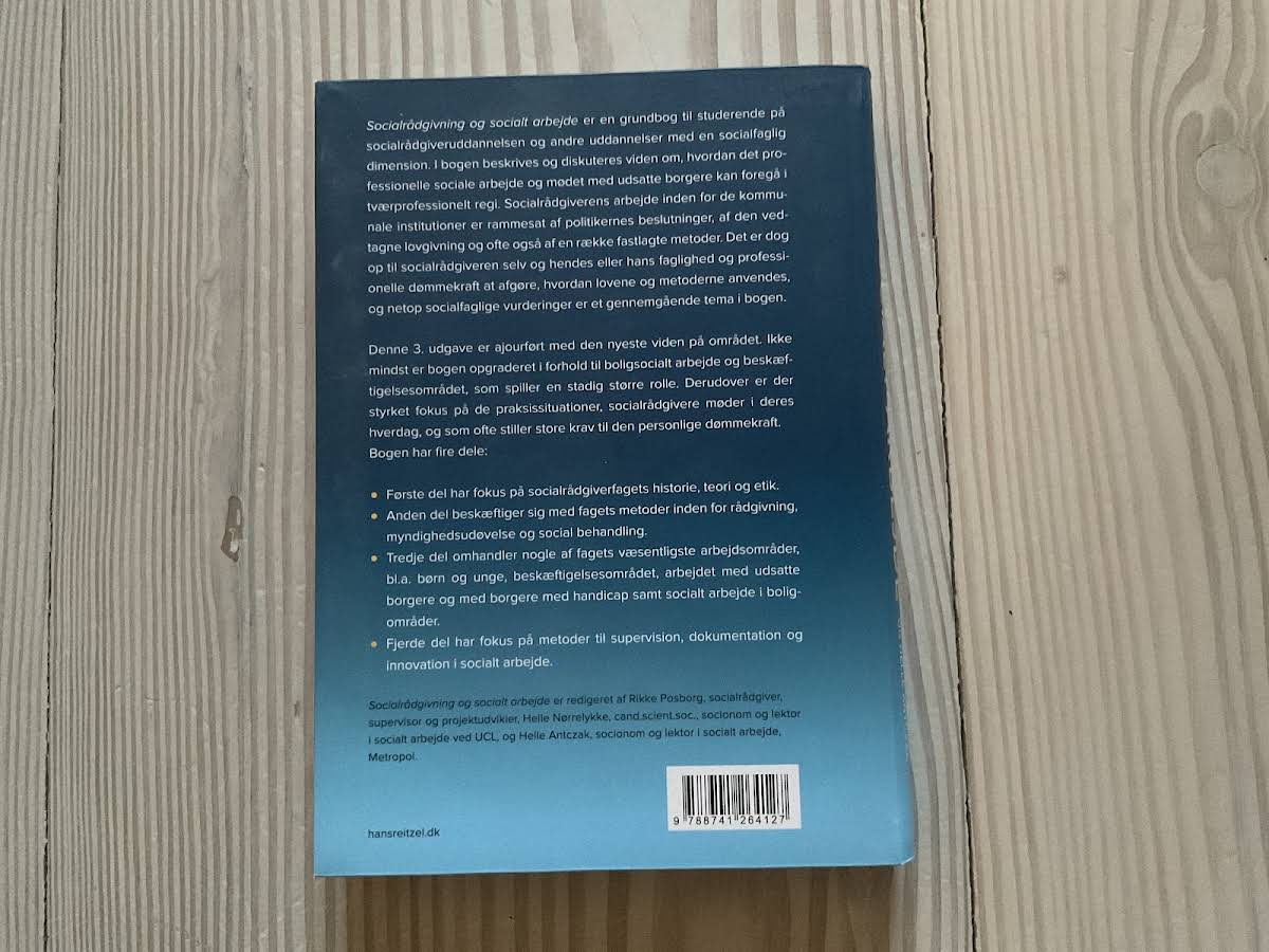 Socialrådgivning og socialt arbejde – En grundbog er en central lærebog for studerende inden for socialrådgiveruddannelsen og andre med et socialfagligt fokus. Bogen belyser, hvordan professionelt socialt arbejde kan foregå i et tværfagligt regi, med særlig opmærksomhed på mødet med borgere, der befinder sig i udsatte livssituationer. I denne grundbog introduceres læseren til socialrådgiverfagets teoretiske og etiske fundament samt de metoder, der anvendes i rådgivning, myndighedsudøvelse og social behandling. Selvom de politiske beslutninger, gældende lovgivning og etablerede metoder sætter rammerne for det daglige arbejde, understreges betydningen af den enkelte socialrådgivers faglighed og professionelle dømmekraft. Bogen er struktureret i fire overordnede dele: den første del omhandler fagets historie, teori og etik; den anden fokuserer på de praktiske metoder; den tredje præsenterer centrale arbejdsområder som arbejde med børn og unge, beskæftigelse, støtte til udsatte borgere samt socialt arbejde i boligområder; og den fjerde del giver redskaber til supervision, dokumentation og innovation i praksis. Med indsigtsfulde perspektiver og relevante eksempler fremmer bogen en nuanceret forståelse af det komplekse sociale arbejde.
