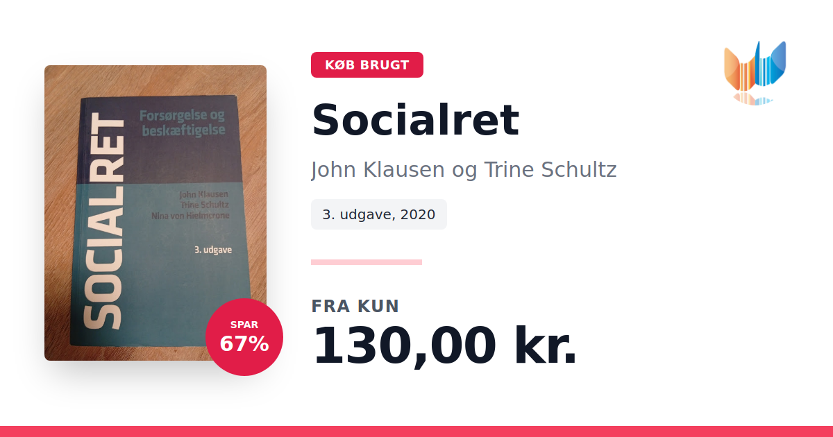 Socialret giver en systematisk og grundig gennemgang af de retsgrundlag, der ligger til rette for kommunernes administration på forsørgelses- og beskæftigelsesområdet. Bogen præsenterer et nøje udvalgt lovmateriale med særlig vægt på de regler, som understøtter arbejdet i de kommunale jobcentre. Den er udformet som både opslagsværk og faglig reference for sagsbehandlere, rådgivere og undervisere med interesse for socialretlige spørgsmål. Med sin klare struktur og dækkende indhold er Socialret et uundværligt redskab for enhver, der beskæftiger sig med sager inden for den kommunale forvaltning. Forfatterne, lektorerne Trine Schultz, John Klausen og Nina von Hielmcrone, alle ansat ved Juridisk Institut på Aalborg Universitet, trækker på mange års erfaring fra forskning og undervisning inden for socialret. Denne tredje udgave, udgivet i 2020, rummer 518 sider af opdateret og relevant viden.