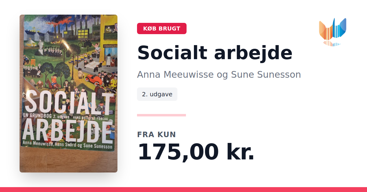 Lige nu kan du købe "Socialt arbejde" af Anna Meeuwisse og Sune Sunesson til kun 175,00 kr. Bogen du ser her er brugt, og i god stand. Vi har i øjeblikket kun et enkelt eksemplar til salg af "Socialt arbejde", så slå til mens du kan!