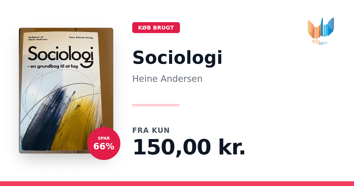Lige nu kan du købe "Sociologi" af Heine Andersen til kun 150,00 kr. Du sparer hele 66% af nyprisen! Bogen du ser her er brugt, og i god stand. Vi har i øjeblikket 7 eksemplarer til salg af "Sociologi", så husk at se de forskellige udgaver.
