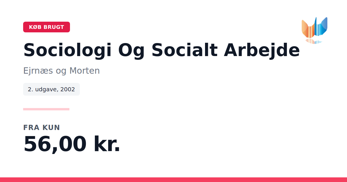 Lige nu kan du købe "Sociologi Og Socialt Arbejde" af Ejrnæs og Morten til kun 56,00 kr. Bogen du ser her er brugt, og i god stand. Vi har i øjeblikket 2 eksemplarer til salg af "Sociologi og socialt arbejde", så husk at se de forskellige udgaver.