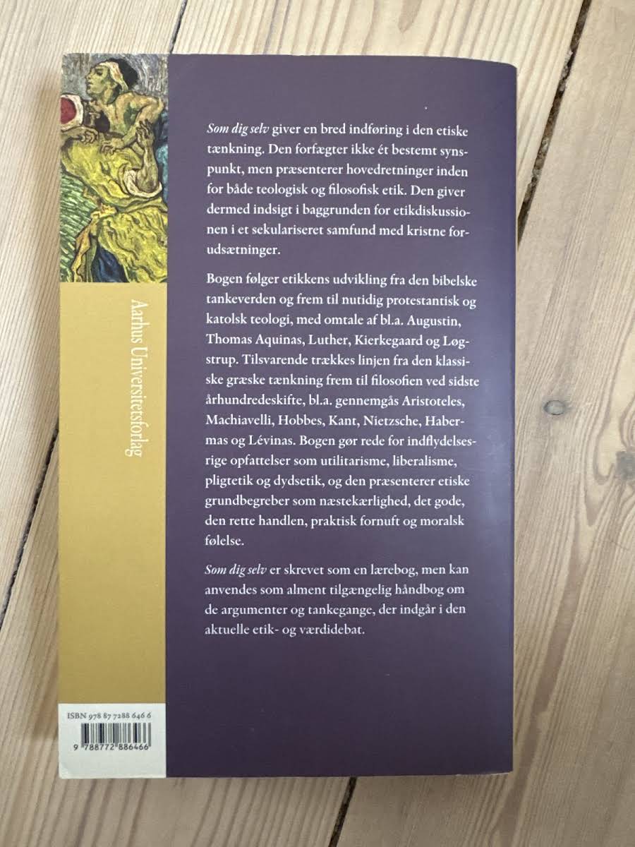 "Som dig selv" er en grundig lærebog og håndbog, der dykker ned i den etiske tankegang og præsenterer de centrale retninger inden for både teologisk og filosofisk etik. Bogen tilbyder et indsigtsfuldt overblik over de argumenter, der former vores etiske debat i et sekulariseret samfund med kristne rødder, og følger etikkens udvikling fra de bibelske visioner til moderne protestantisk og katolsk teologi med omtale af blandt andet Augustin, Thomas Aquinas, Luther, Kierkegaard og Løgstrup. Bogen trækker desuden trådene fra den klassiske græske tænkning helt frem til filosofien ved århundredeskiftet, hvor tænkere som Aristoteles, Machiavelli, Hobbes, Kant, Nietzsche og Habermas belyses. Med sine 380 sider gør "Som dig selv" rede for indflydelsesrige opfattelser som utilitarisme, liberalisme, pligtetik og dydsetik, og den introducerer grundlæggende etiske begreber såsom næstekærlighed, praktisk fornuft og moralsk følelse. Denne bog er et uundværligt redskab for alle, der ønsker en dybere forståelse af de etiske principper, der former vores samfund.