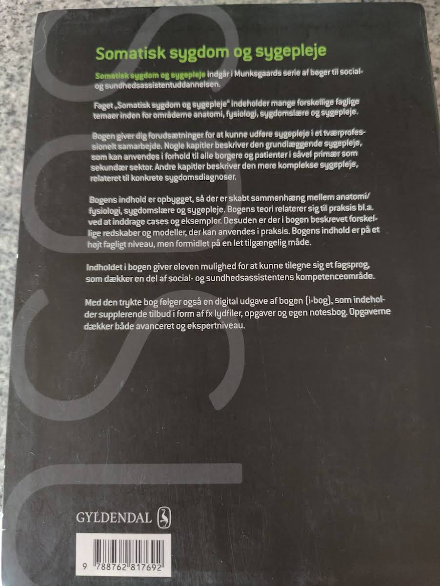 "Somatisk sygdom og sygepleje (SSA). Bind I-II" er en grundbog, der dækker de essentielle områder inden for anatomi, fysiologi, sygdomslære og sygepleje. Med et bredt spektrum af faglige temaer henvender bogen sig til social- og sundhedsassistenter, der skal anvende teoretiske og praktiske redskaber i både primære og sekundære plejesituationer. Bogen er struktureret med et tæt samspil mellem de vitale emner, hvor teori og praksis mødes gennem cases, eksempler og modeller, der illustrerer implementeringen af både basal og kompleks sygepleje. Materialet er præsenteret på en lettilgængelig måde, der giver læseren mulighed for at opbygge et stærkt fagligt sprog og udvikle de nødvendige kompetencer til effektivt tværprofessionelt samarbejde. I den digitale version, tilgængelig via iBog, supplerer ekstra materiale herunder lydfiler, film og interaktive opgaver den trykte tekst, så du kan dykke endnu dybere ned i fagets nuancer. Udarbejdet i et højt fagligt niveau, er bogen et uundværligt redskab for din videre faglige udvikling.