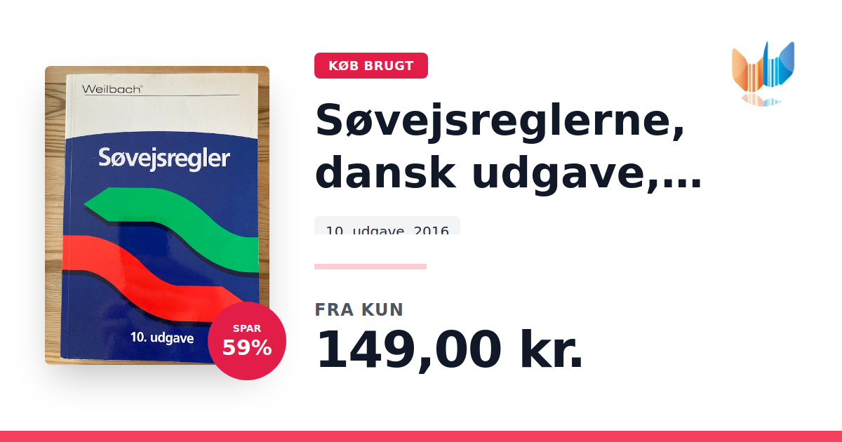 Lige nu kan du købe "Søvejsreglerne, dansk udgave, kommenteret " til kun 149,00 kr. Du sparer hele 59% af nyprisen! Bogen du ser her er brugt, og i perfekt stand. Vi har i øjeblikket kun et enkelt eksemplar til salg af "Søvejsreglerne, dansk udgave, kommenteret ", så slå til mens du kan!