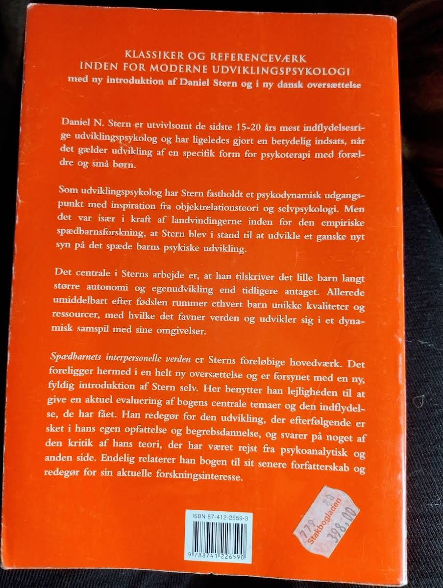 Daniel N. Sterns banebrydende værk, "Spædbarnets interpersonelle verden", giver et dybt indblik i, hvordan spædbørn fra fødslen af er aktive, selvudviklende individer. Gennem omfattende empirisk forskning udfordrer Stern de traditionelle psykoanalytiske opfattelser og fremhæver barnets unikke kvaliteter og ressourcer i mødet med dets omverden. Bogen, der udkom i 2005 hos Hans Reitzels Forlag, præsenterer et perspektiv, hvor spædbarnet ses som et dynamisk centrum for interaktion og læring. Med udgangspunkt i en psykodynamisk tilgang giver Stern både studerende og praktiserende børnepsykologer en ny forståelse af, hvordan tidlige relationer former den menneskelige udvikling.