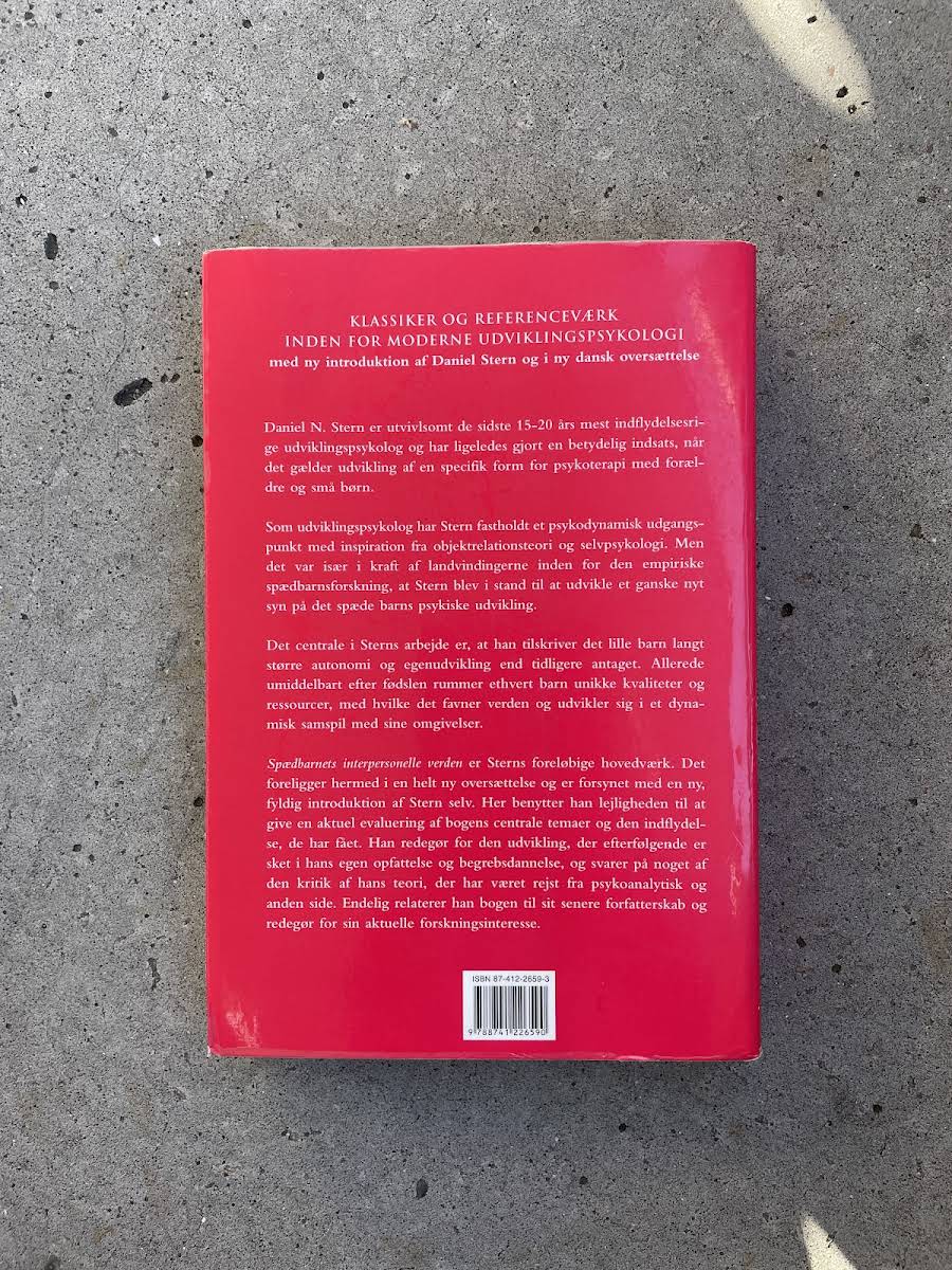 Daniel N. Sterns banebrydende værk, "Spædbarnets interpersonelle verden", giver et dybt indblik i, hvordan spædbørn fra fødslen af er aktive, selvudviklende individer. Gennem omfattende empirisk forskning udfordrer Stern de traditionelle psykoanalytiske opfattelser og fremhæver barnets unikke kvaliteter og ressourcer i mødet med dets omverden. Bogen, der udkom i 2005 hos Hans Reitzels Forlag, præsenterer et perspektiv, hvor spædbarnet ses som et dynamisk centrum for interaktion og læring. Med udgangspunkt i en psykodynamisk tilgang giver Stern både studerende og praktiserende børnepsykologer en ny forståelse af, hvordan tidlige relationer former den menneskelige udvikling.