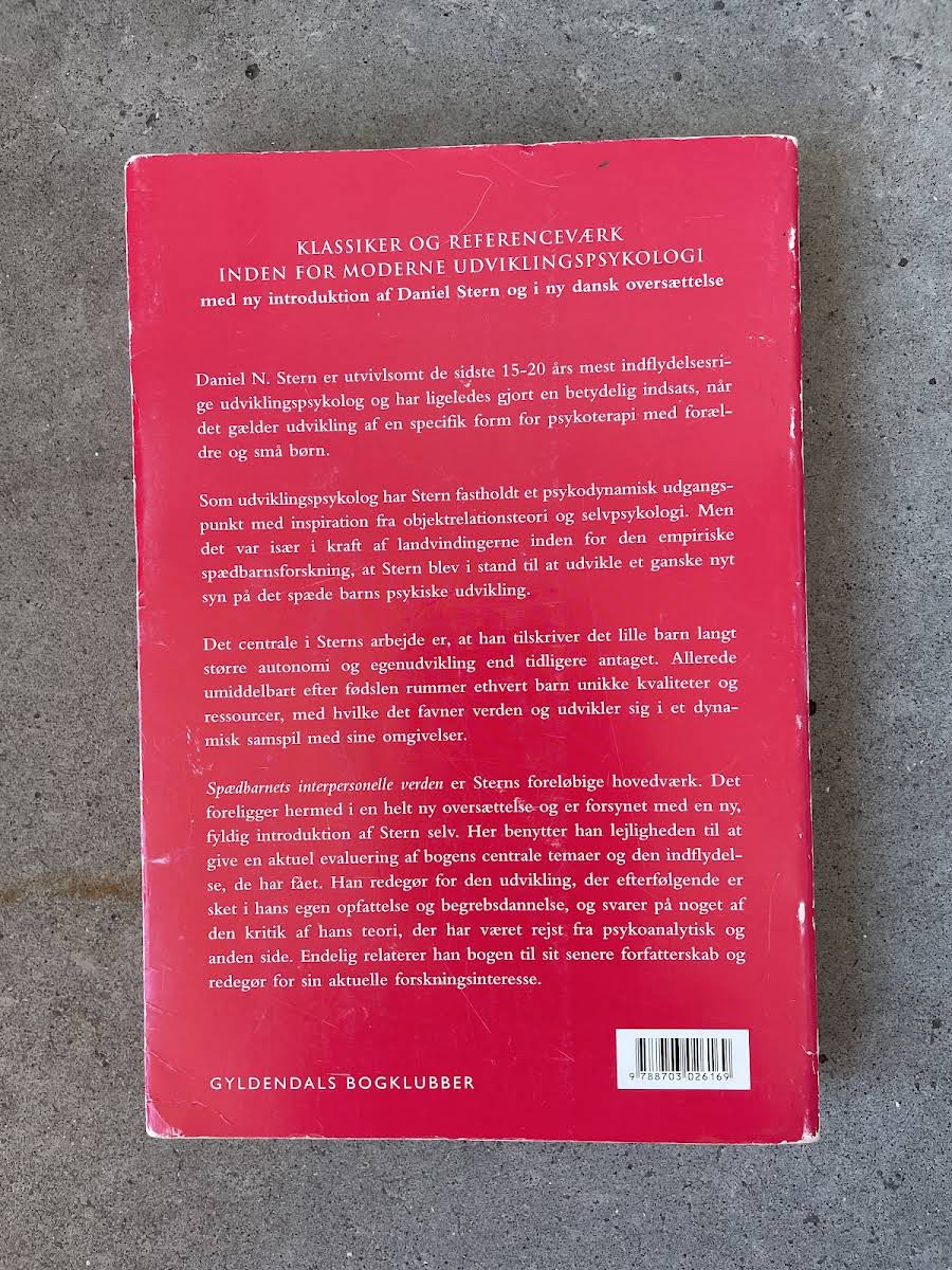 Daniel N. Sterns banebrydende værk, "Spædbarnets interpersonelle verden", giver et dybt indblik i, hvordan spædbørn fra fødslen af er aktive, selvudviklende individer. Gennem omfattende empirisk forskning udfordrer Stern de traditionelle psykoanalytiske opfattelser og fremhæver barnets unikke kvaliteter og ressourcer i mødet med dets omverden. Bogen, der udkom i 2005 hos Hans Reitzels Forlag, præsenterer et perspektiv, hvor spædbarnet ses som et dynamisk centrum for interaktion og læring. Med udgangspunkt i en psykodynamisk tilgang giver Stern både studerende og praktiserende børnepsykologer en ny forståelse af, hvordan tidlige relationer former den menneskelige udvikling.