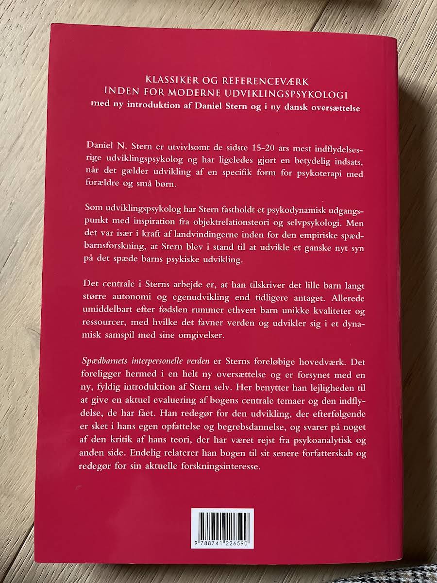 Daniel N. Sterns banebrydende værk, "Spædbarnets interpersonelle verden", giver et dybt indblik i, hvordan spædbørn fra fødslen af er aktive, selvudviklende individer. Gennem omfattende empirisk forskning udfordrer Stern de traditionelle psykoanalytiske opfattelser og fremhæver barnets unikke kvaliteter og ressourcer i mødet med dets omverden. Bogen, der udkom i 2005 hos Hans Reitzels Forlag, præsenterer et perspektiv, hvor spædbarnet ses som et dynamisk centrum for interaktion og læring. Med udgangspunkt i en psykodynamisk tilgang giver Stern både studerende og praktiserende børnepsykologer en ny forståelse af, hvordan tidlige relationer former den menneskelige udvikling.