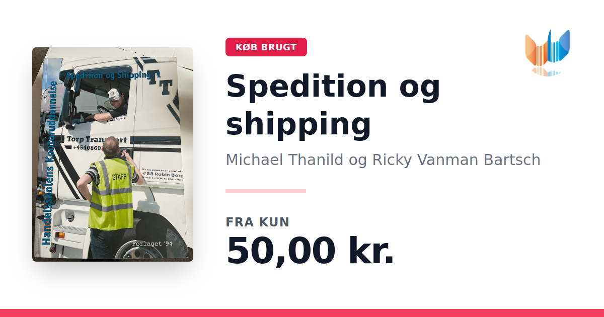 Lige nu kan du købe "Spedition og shipping" af Michael Thanild og Ricky Vanman Bartsch til kun 50,00 kr. Bogen du ser her er brugt, og i perfekt stand. Vi har i øjeblikket 2 eksemplarer til salg af "Spedition og shipping", så husk at se de forskellige udgaver.