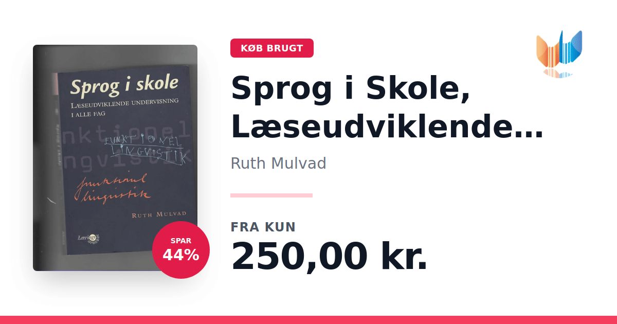 I Sprog i Skole. Læseudviklende undervisning i alle fag. Funktionel lingvistik præsenterer Ruth Mulvad et helhedsorienteret blik på, hvordan sprog og læsning kan blive katalysator for faglig forståelse. Med udgangspunkt i funktionel lingvistik viser bogen, hvordan elever lærer sprog gennem fagligt indhold og samtidig udvikler deres læsefærdigheder. Hverdagens tekster fra matematik, natur/teknik, biologi, geografi, fysik/kemi, historie, hjemkundskab, samfundsfag, dansk og kristendomskundskab danner grundlag for diskussioner om integreret sprog- og fagundervisning. Målet er at vende sproglige barrierer til læringsmuligheder, så læsning styrker både forståelse og engagement. Med konkrete eksempler på tekstanalyse, genrearbejde og sprogbearbejdning giver bogen pædagogiske redskaber til at planlægge undervisning, der sætter sprog i centrum. Sprog i Skole er et uundværligt værktøj for lærere, der ønsker at skabe en læseudviklende praksis i alle fag.